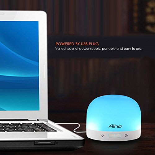 Diffusore di Aromi Aiho Ultrasuoni Umidificatore Diffusore Ventilatore di cavo USB, Diffusore aromi Portatile per viaggiare, Batterie alimentate, 7 colori LED luci, perfetto per Casa, Ufficio, Yoga, Auto
