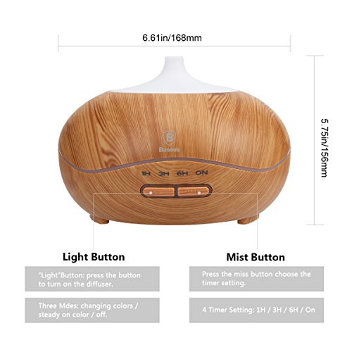 Diffusore di aromi Baseus, diffusore di oli essenziali da 300 ml con diffusione nebbia regolabile, spegnimento automatico ad esaurimento dell'acqua e 7 luci LED con colori che cambiano, per la casa e ufficio, venatura del legno