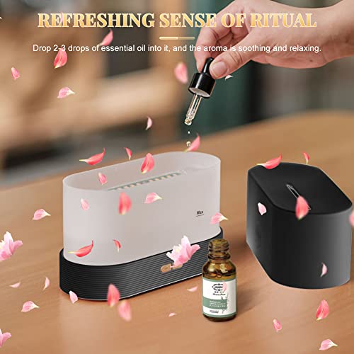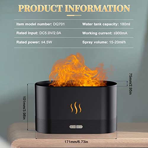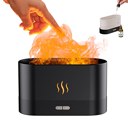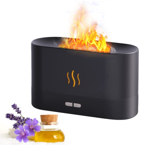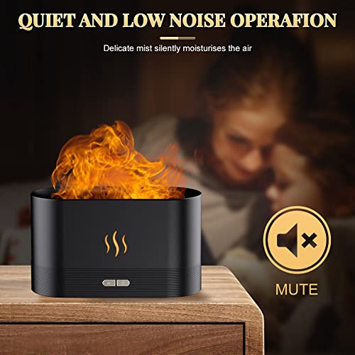 Diffusore di aromi con effetto fiamme, 180 ml, portatile ad ultrasuoni per aromaterapia, umidificatore con 2 luci notturne, spegnimento automatico, per camera da letto, casa, ufficio (nero)