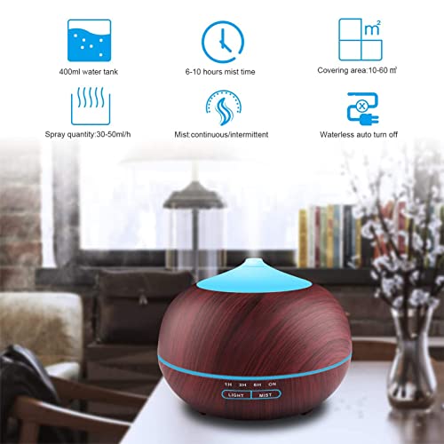 Diffusore di aromi per oli essenziali: 400ml umidificatore ad ultrasuoni Diffusore di oli aromaterapici Diffusore d'aria in legno silenzioso Nebulizzatore di aromaterapia per camera da letto ufficio