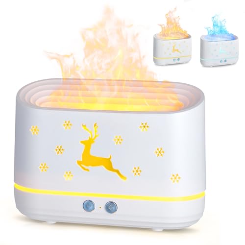 Diffusore di Aromi a Fiamma, Umidificatore da 300 ML con Effetto Fiamma per Oli Essenziali, 3 in 1 Umidificatore e Diffusore di Aromi e Luce Notturna a 2 Colori, Ultra Silenzioso, 3 Modalità