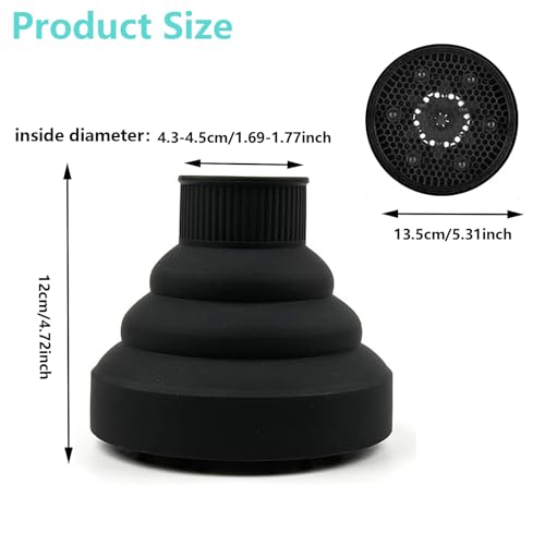 【Diffusore Universale Capelli】Diffusore capelli ricci adatto per 4.3 ~ 4.5 centimetri Diametro dell'ugello del phon, facile da installare. Il diametro dell'uscita dell'aria è di 13,5 cm, che può soffiare i capelli su un'area più ampia.