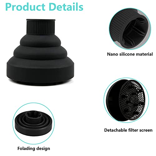 Diffusore Capelli Ricci,Diffusore Universale Capelli,Pieghevole diffusore Hood,Portatile Pieghevole Diffusore in Silicone,Diffusore Phon Universale Capelli,per Asciugacapelli(Nero)