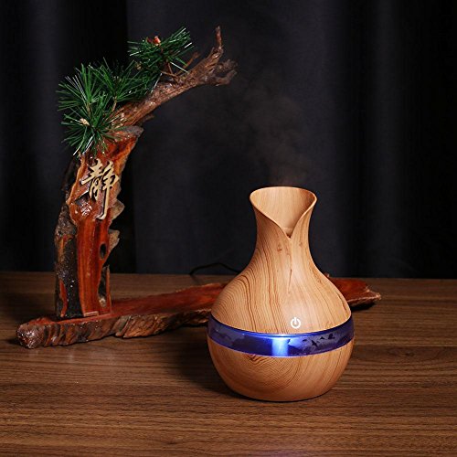UEB Diffusore di oli Essenziali Aromatici 200ml Mini Aromaterapia Umidificatore per Aromi Diffusore di Aromi e Olio Essenziale con Luce LED a 7 Colori per Ufficio Casa Yoga Spa (Marrone chiaro)