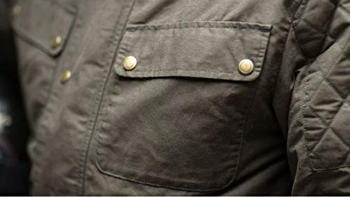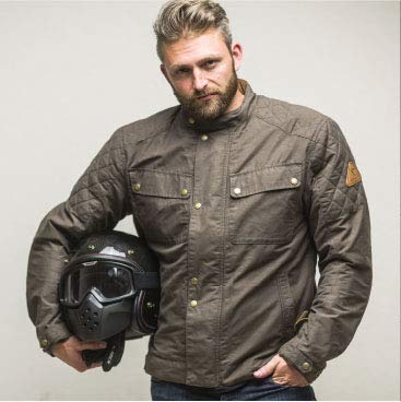 Bellissima giacca da motociclista in moderna waxcot tono con membrana climatica traspirante e impermeabile. Questa moto è dotato di protezioni certificate, trapuntato leggero e collegamento cerniere.