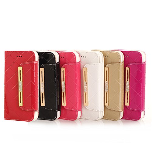 DIGIC iPhone 6 Case,Soft PU Leather Stand Feature Wallet Cover Flip Case Kickstand Diamond Card Holder Dark Button Type Money Pocket Magnet Shell with Hand Strap Shockproof Cover for iPhone 6 (Red)
