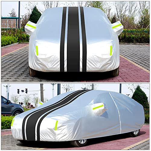 ��【 Design professionale】①360° Design a strisce riflettenti a tutto tondo copertura per auto, il parcheggio di notte riduce notevolmente la possibilità che l'auto venga graffiata, rendendo l'auto più accattivante quando è ferma. ② Design della cerniera della porta laterale, la cerniera della porta principale del lato conducente ha un design riservato, che è più comodo da recuperare ;