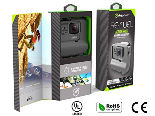 Digipower Re-fuel - Batteria ricaricabile per GoPro Hero7 Black, Hero6 Black, Hero5 Black & Hero 2018, impermeabile fino a 10 m, 4800 mAh