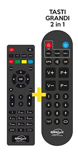 Due telecomandi in dotazione di cui uno con tasti grandi con funzione telecomando 2 in 1: controlli il decoder e alcune funzioni del TV con un solo apparecchio