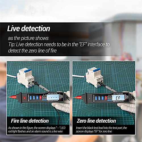 1. MULTIMETRO A PENNA MULTIFUNZIONE: questo multimetro digitale a penna può eseguire misurazioni di tensione 4V-600V AC/DC, resistenza 4kΩ-40MΩ, capacità, test di frequenza, rilevamento del segnale acustico dell'interruttore, rilevamento del fuoco zero, ecc.