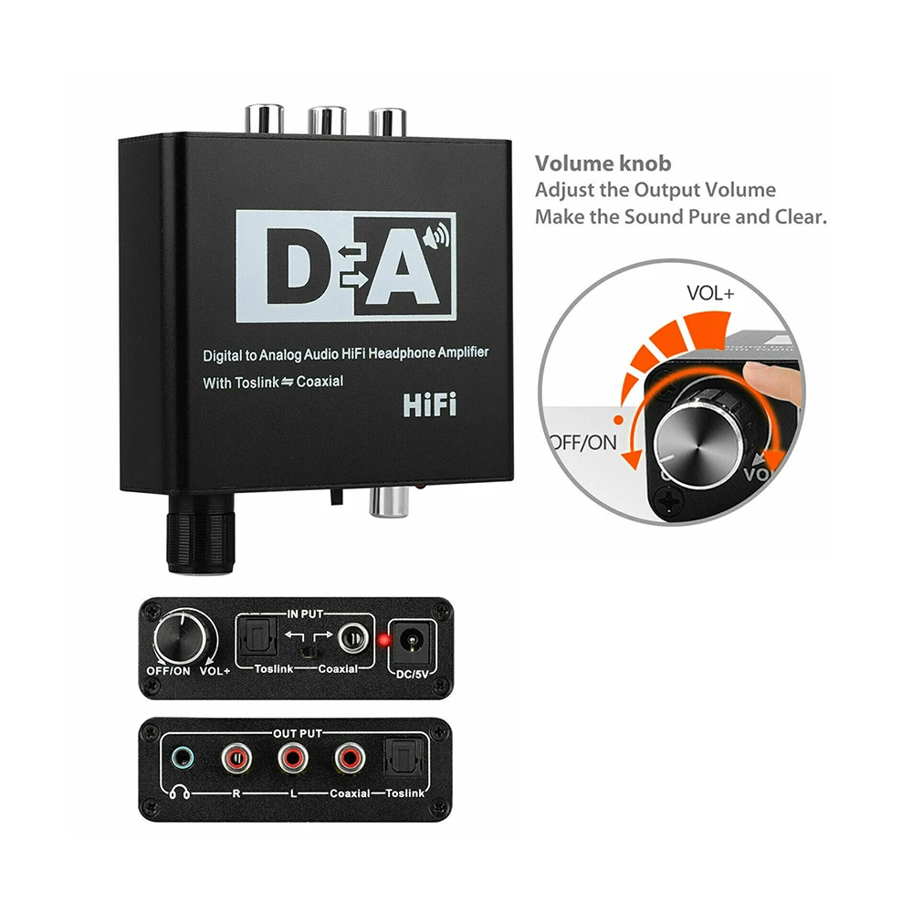 24 Bit Digital to Analog Converter 3.5 Jack RCA DAC Spdif Amplifier Decoder Optical Fiber Coaxial For Headphone With Volume Knob