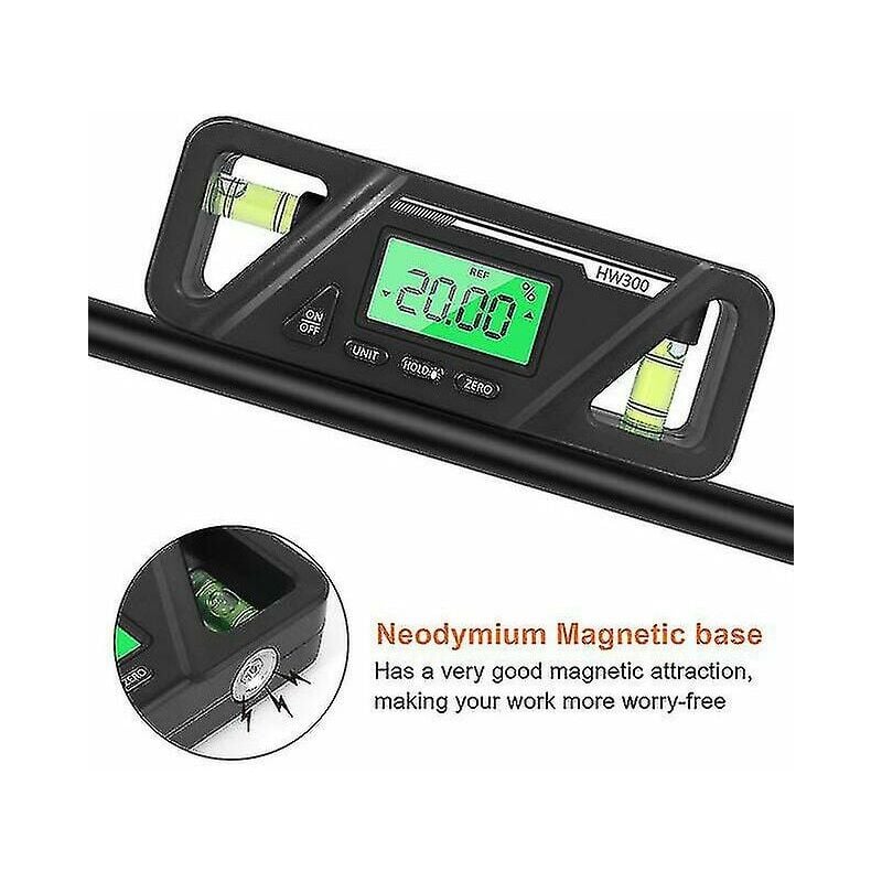 Caratteristiche: base magnetica al neodimio, ha un'ottima attrazione magnetica per il pezzo da misurare, il che rende il tuo lavoro più senza preoccupazioni. Lavorazione di precisione con conversione in 2 modalità di misurazione: misurazione dell'angolo d e angolo relativo misurazione e due fiale (90 e 0 gradi). Conversione pendenza gradi / percentuale. Mantieni i valori del display misurati, facili da leggere. Il display a LED può essere capovolto automaticamente. Spegnimento automatico dopo un continuo non utilizzo, in modo da non sprecare la carica della batteria. Dimensioni portatili, facili da usare con altri strumenti di misurazione, ampliando il campo di misurazione. Riparazione del legno veicoli di trasformazione;