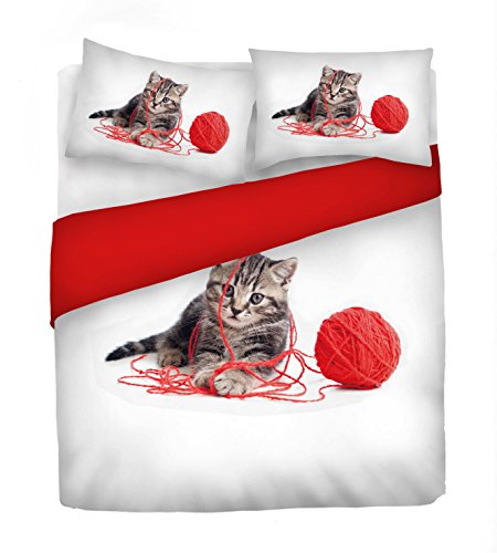 Digital Parure Copripiumino, 100% Cotone, Multicolore (507 Gatto Gomitolo), Singolo