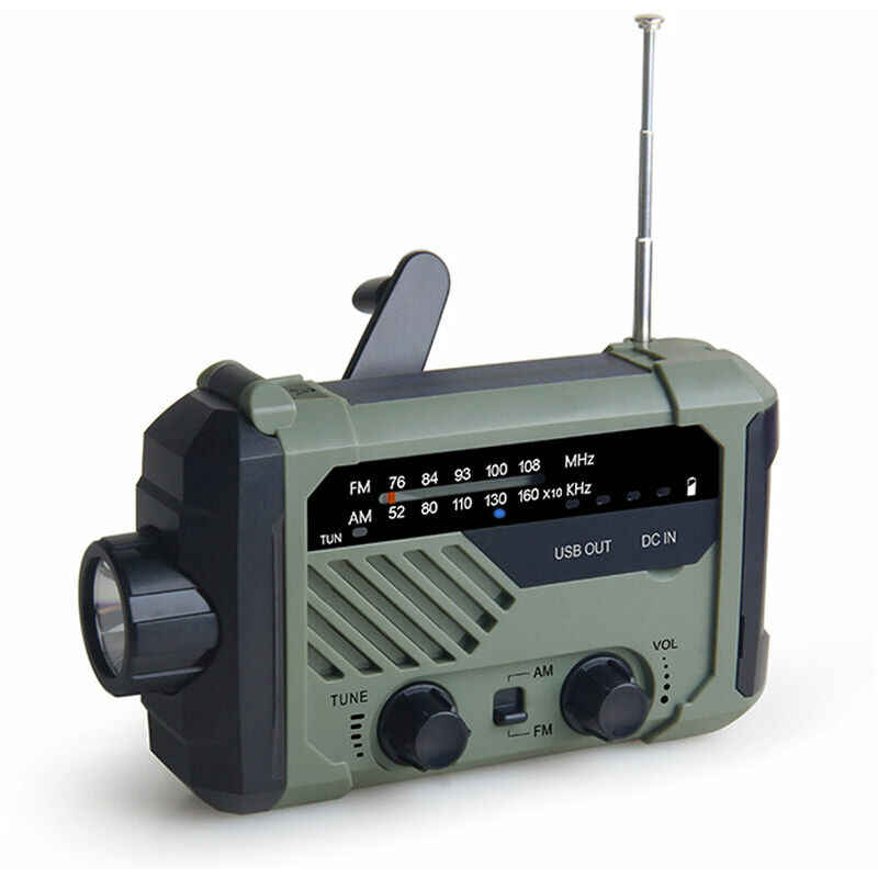 Panoramica: La radio riceve le bande AM e FM, così puoi ascoltare la radio e le notizie a casa o ovunque. Con l'uscita di alimentazione USB, può essere utilizzato come fonte di alimentazione di backup per alimentare dispositivi intelligenti. 4 modalità di alimentazione, incluso il funzionamento con batteria AAA (batterie AAA NON incluse), generazione di energia a manovella, ricarica solare e ingresso 5V CC. Questa radio portatile è progettata come radio di emergenza con allarme SOS e torcia a LED. Con le manopole del volume e di sintonizzazione, i pulsanti di commutazione AM/FM, è facile e comodo da usare. Caratteristiche: La radio riceve le bande AM e FM così puoi ascoltare la radio e le notizie a casa o ovunque.4 modalità di alimentazione: alimentato da 3 batterie AAA (NON incluse), generazione di energia a manovella, ricarica solare e ingresso 5 V CC.Con uscita di alimentazione USB, può essere utilizzato come fonte di alimentazione di emergenza per alimentare dispositivi