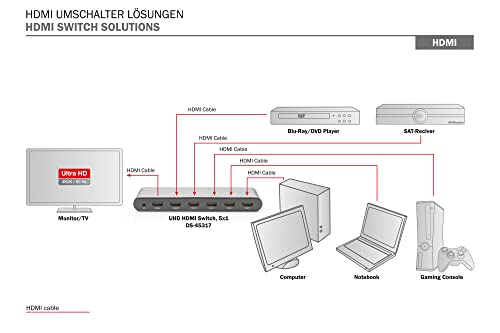 Digitus Commutatore 4K HDMI, 5x1, Nero