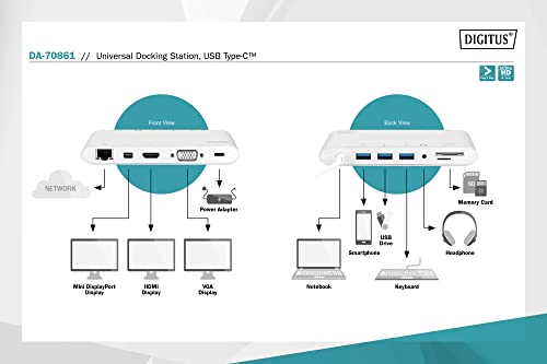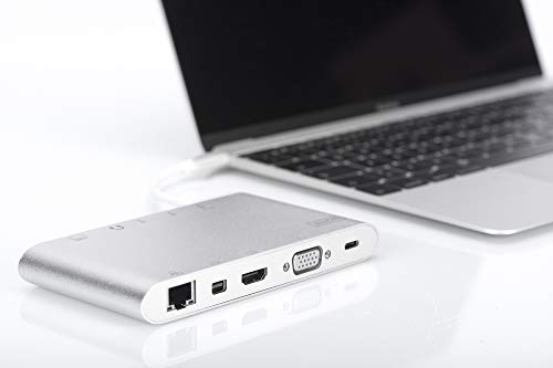 Digitus DA-70861, Multiport Docking Station - Dock USB-C Dock 11 porte - Audio/Video, RJ45, 3x USB 3.0, porta di ricarica, lettore di schede - grigio