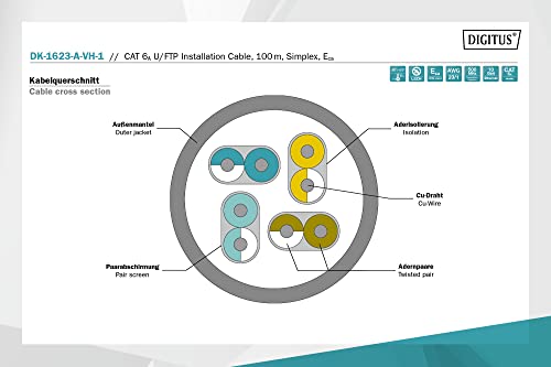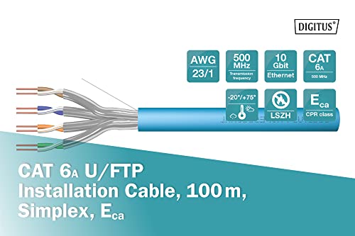 Digitus DK1623AVH1 Matassa, Cavo Solido, Schermato U/FTP Halogenfree per Reti, Categoria 6A in Rame, 100 mt, Simplex - LSZH-1 - Eca, Cat-6A - U-FTP - 100m