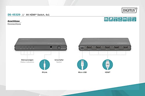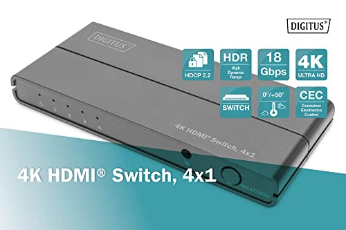 DIGITUS Switch HDMI 4K, 4x1 4K/60Hz, 18 Gbps, HDR, HDCP 2.2, CEC