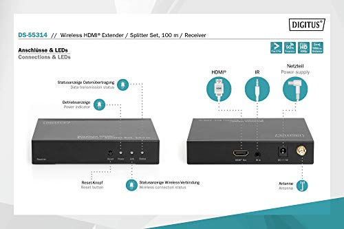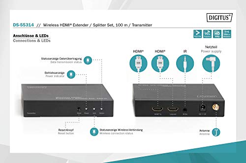 Digitus Wireless HDMI Extender Set - Loop-out - Trasmissione IR - Portata Fino a 100 m - Espandibile Fino a 4 ricevitori