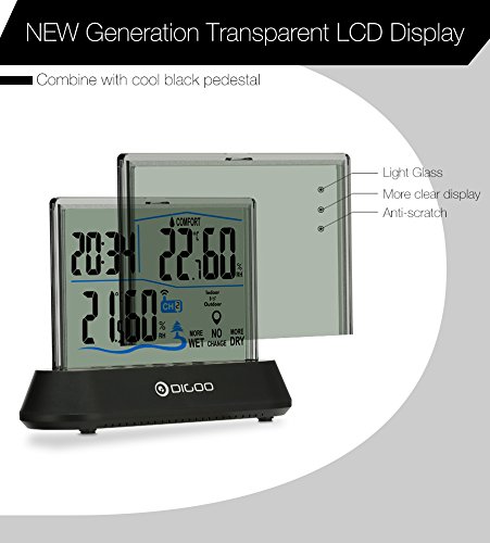DIGOO DG-TH1001 Termometro interno ed esterno Igrometro Digitale Senza Fili Schermo Grande e Trasparente Sveglia umidità Temperatura