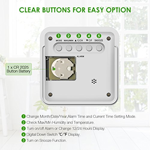 Uso interno: posizionare un termometro in casa vostra indoor, la costruzione resistente alle intemperie è ideale per uso interno, misura temperature