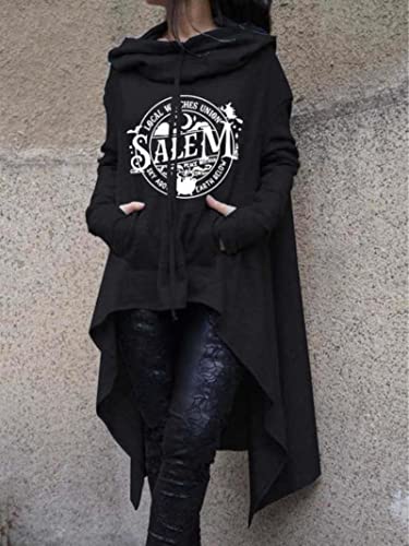 DIGUCFH Donne Local Witches Union Salem Felpa Asimmetrica Irregolare di Halloween-Nero,S