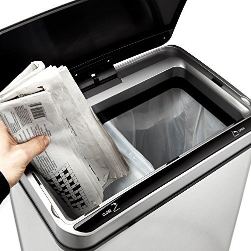 Dihl 50L, Dual Twin, bidone per la spazzatura, con 2 sezioni, per la raccolta differenziata, con sensore per apertura automatica, in acciaio INOX