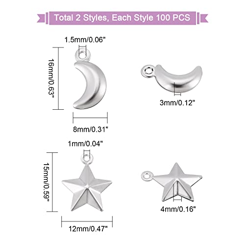 DIICOSMETIC 200 pz 2 Stili 316 Ciondoli Stella e Luna in Acciaio Inossidabile Pendenti con Stella Puffy Pendenti con Luna Crescente per La Creazione di Gioielli Braccialetto Neckalace, Foro:1-1.5mm