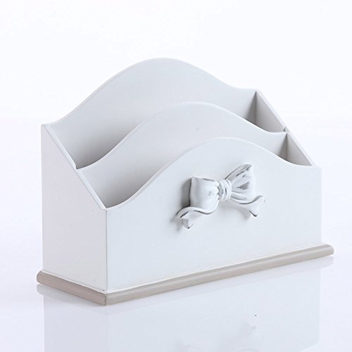 DiKasa Home Portaposta Fiocco, Legno, Bianco, 24x10x17 cm