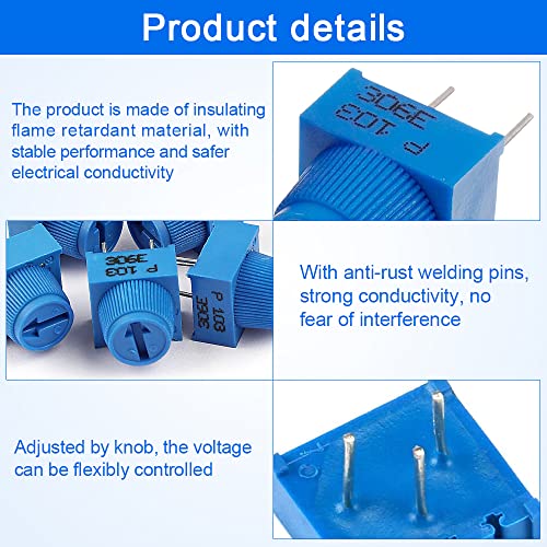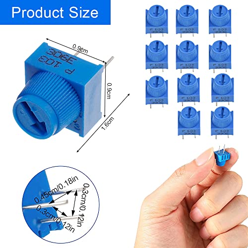 DIKEBAO 10 Pezzi Potenziometri per Trimmer Potenziometro Variabile Blu Trimmer Multigiro 0-10K Ohm a 3 Terminali Trimmer Multigiro Resistore Variabile Potenziometro per Circuit Experiment Board