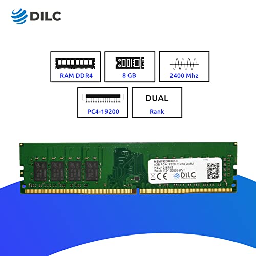 DILC, RAM DDR4 DIMM 8GB, Memoria RAM per Computer Fisso, 2400Mhz, PC4-19200 (288 Pin), Dual Rank, Compatibile con Computer con Scheda Madre Intel o Amd, Perfomance Elevate, Garantita a Vita, 1024x8