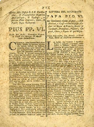 Dilectis filiis nostris S.R.E. cardinalibus & venerabilibus fratribus archiepiscopis & episcopis ac dilectis filiis capitulis clero & populo regni Galliarum Pius pp. VI. dilecti filii nostri venerabiles fratres ac dilecti filii salutem & apostolicam benedictionem.