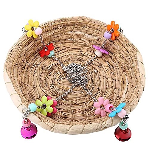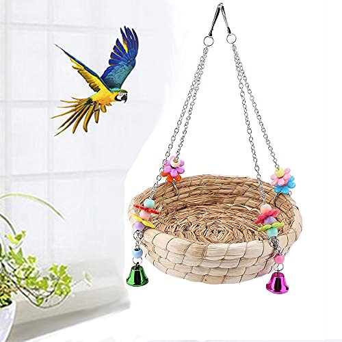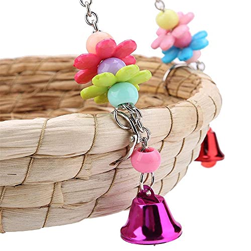 Dilireba Giocattoli Pappagallo di Uccelli, Uccelli Giocattoli da Masticare, Pappagallo Altalene, Naturale Paglia Intrecciata a Mano Giocattoli Uccelli con 4 Campane in Metallo per Conuri, Ara