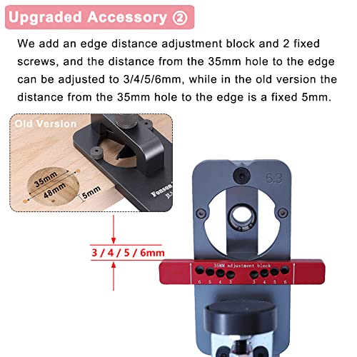 【Accessorio aggiornato 2】 Aggiungiamo un blocco di regolazione della distanza dal bordo e 2 viti fisse e la distanza dal foro da 35 mm al bordo può essere regolata a 3/4/5/6 mm, mentre nella vecchia versione la distanza dal foro da 35 mm al bordo è un fisso 5mm.