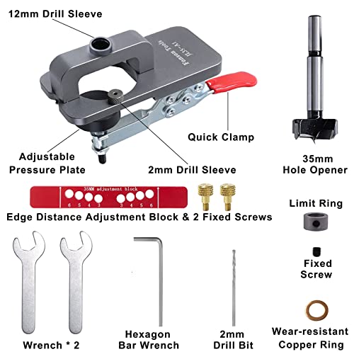 【Preciso e durevole】 Realizzato in materiale in lega di alluminio, il nostro set di guide per trapano a cerniera da 35 mm ha una lunga durata con produzione di precisione, bloccaggio accurato e funzionamento conveniente. Molto pratico, questo perforatore per la lavorazione del legno è un ottimo kit di attrezzi per le fabbriche di mobili e gli appassionati di lavorazione del legno per montare le cerniere nascoste su porte o armadi.