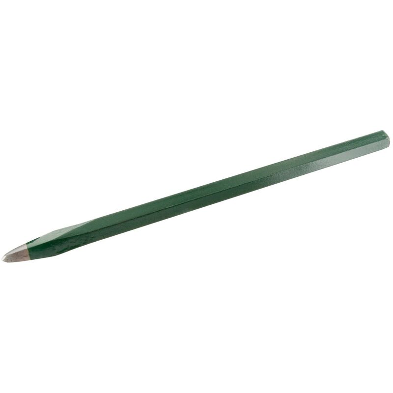 In acciaio forgiato, sezione esagonale. punta acuta lunghezza 25 cm