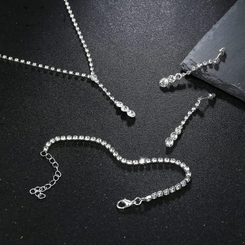 SPECIFICHE E TAGLIA: collana di strass argento lunghezza 17,7 "(con catena di estensione da 2"). Gli orecchini a goccia sono lunghi 1,8"/1,2". La circonferenza del braccialetto da tennis è di 5,9 pollici (con una catena di estensione di 2 pollici). Può adattarsi alla maggior parte delle donne e delle ragazze.