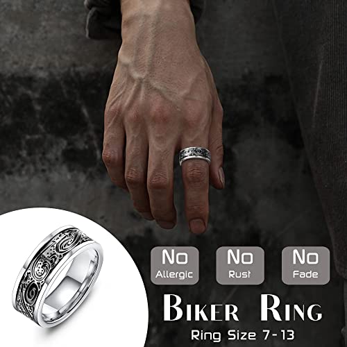 【ANELLI DA UOMO ALLA MODA】 Un ordine include 4 anelli in acciaio inossidabile in diversi stili, nodo celtico anello vintage, anello da uomo inciso, anello con sigillo in onice nero e anello di fidget cool. Intagli delicati e motivi retrò, che ti danno una trama lussuosa, ti fanno sembrare più bello e bello.