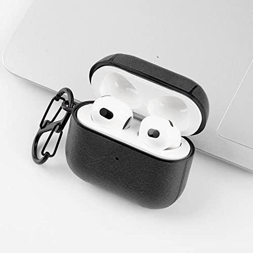 Diman Custodia Compatibile con AirPods 3, Cover Protettiva in Pelle con Moschettone, Antiurto Portatile Custodia Protettiva per AirPods 3 Generazione 2021 [Ricarica Wireless], Nero