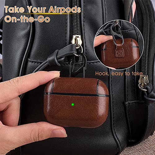 Diman Custodia Compatibile con AirPods 3, Cover Protettiva in Pelle con Moschettone, Antiurto Portatile Custodia Protettiva per AirPods 3 Generazione 2021 [Ricarica Wireless], Marrone