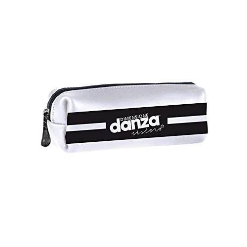 DIMENSIONE DANZA SISTERS, Astuccio scuola elementare bauletto, Astuccio piccolo con personalizzazione con stampa glitter in contrasto, Astuccio penne con zip, Dimensione 21x7x6 cm (Bianco)