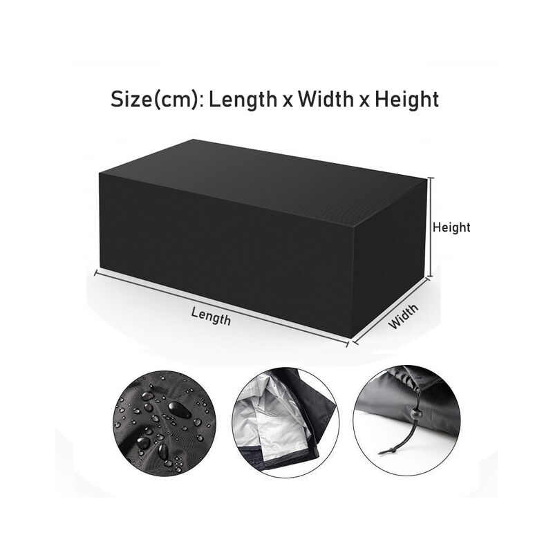 Specifica:Tipo: Mobili di Copertura SetForma: RettangoloColore: Argento Al di Fuori Nero Dentro, Nero Al di Fuori del Argento All'interno,Materiale: Resistenza All'acqua Rivestimento IN PVCFormato: Facoltativo(Si prega di farci sapere il FORMATO che vuoi. È possibile lasciare il messaggio sul vostro Paypal nota o E-mail per dirci.)242x162x100cm / 95.27x63.77x39.37inch308x138x89cm / 121.25x54.33x35.03inch213x132x74cm / 83.85x51.96x29.13inch180x120x74cm / 70.86x47.24x29.13inch126x126x74cm / 49.6x49.6x29.13inch123x61x72cm / 48.42x24.01x28.34inch115x115x70cm / 45.27x45.27x27.55inchAccettiamo anche su misura copre, in Contatto Con noi che formato voi vuole in primo luogo, noi calcolare il prezzo secondo il vostro formato, grazieCaratteristica:Best qualità tessuto in Poliestere, impermeabile e UV testato, disegnare-cavo per il serraggio.Tutti i sorteggio per il turno string inferiore con serrature del cavo per una maggiore sicurezza.Progettato per resistere a condizioni estreme di