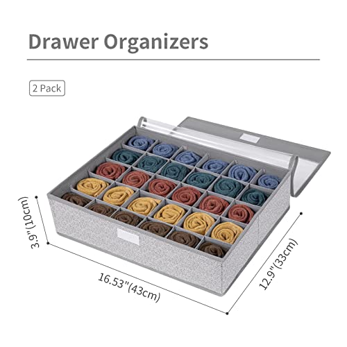 DIMJ Organizer Cassetti, Set di 2 Pieghevole Divisori per Cassetti Non Tessuto, 30 Scompartimenti Calzini, Contenitori per Cassetti, Grigio Chiaro