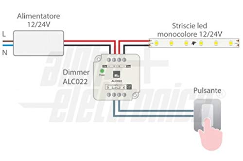 Dimmer per striscie a led monocolore 10a comando a pulsante alpha elettronica alc022