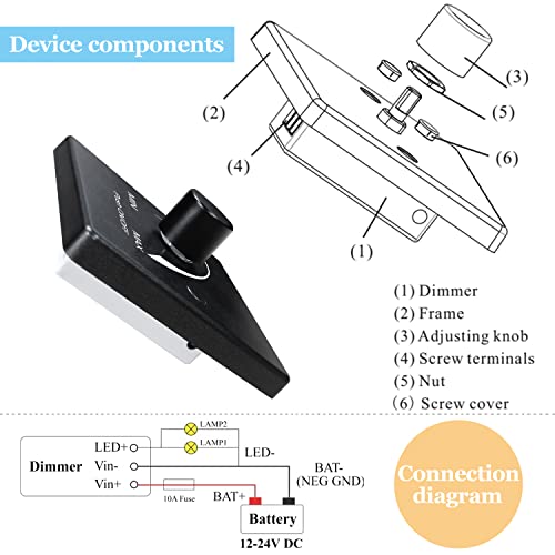 [ Dimmer per Luci DC 12V ] - Dimmera fino a 60W (12V) della lampada a LED, riducendo il consumo di energia e risparmiando le batterie dell'auto.