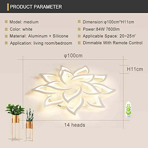 LED Dimmerabile Plafoniera, Dal Design Creativo In Acrilico PetaloLampada Da Soffitto, Telecomando Con Funzione Di Memoria, Adatta Per Soggiorno, Camera Da Letto Plafoniere, 14 Teste/Ø100cm