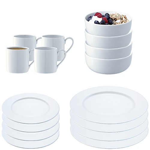 Il set include 4 tazze, 4 ciotole per cereali/zuppe, 4 piatti antipasto/dessert e 4 piatti piani