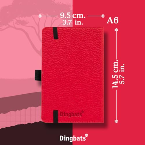 TACCUINO A6 CON MOLTE CARATTERISTICHE: I taccuini Dingbats trasudano qualità: questo taccuino in pelle rilegato con copertina rigida è realizzato in pelle vegana PU, pagine crema microperforate da 100 g/mq, chiusura elastica e portapenne. È completo di fogli terminali con impronte di animali e una tasca interna per un piccolo dettaglio in più: i regali perfetti per i propri cari, questi elementi essenziali da viaggio sono un regalo che continua a fare faville.