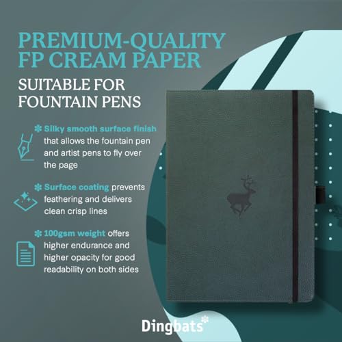 Dingbats - Taccuino Extra Large, Cervo Verde, A4 - Taccuino Con Copertina Rigida - Carta Perforata, Color Crema 100 G/mq A Prova Di Inchiostro