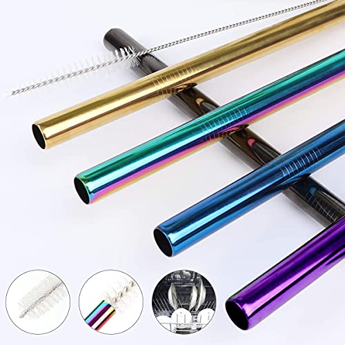 DINGC Cannucce Acciaio Inox Riutilizzabile Grandi Salute, Cannucce Metallo Cannucce Bubble Tea Portatile, Adatto per il Tè, Frappè, Frullato, Succo di Frutta, Caffè, Latte (Con Pennello) Set di 5